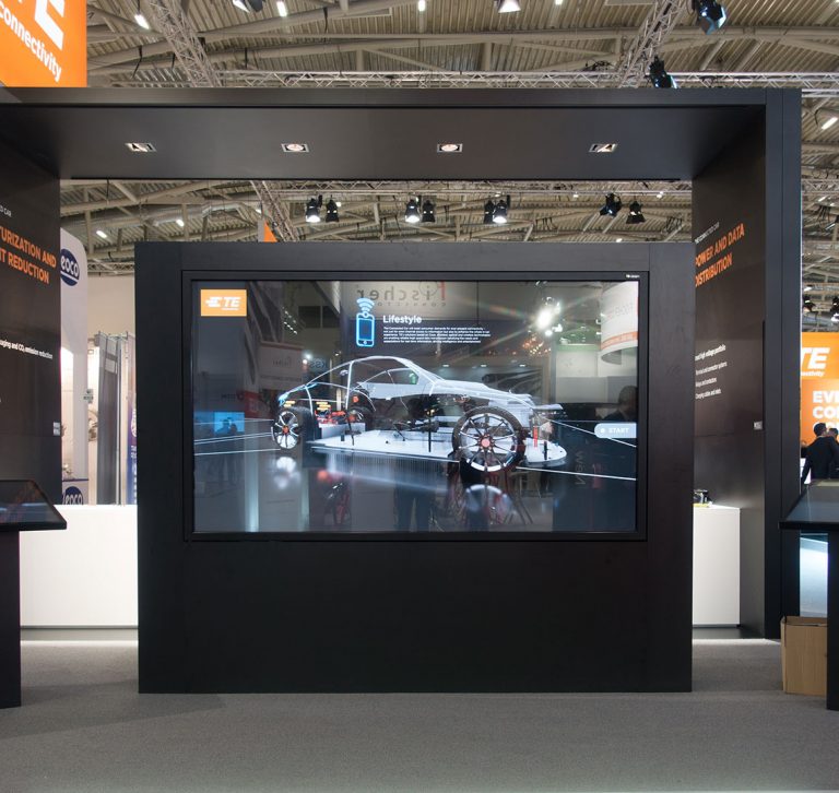 The big interactive touchscreen, which we internally called touchwall (because its as big as a whole wall), provides all kinds of information to visitors and can be used by multiple visitors at the same time (up to 6). It’s using a infrared touch interface and is displayed using 3 86″ 4K monitors. The application itself uses Microsoft UWP because it was the only framework capable of rendering such a big resolution (11520×2160) and also provide useful multitouch gestures.