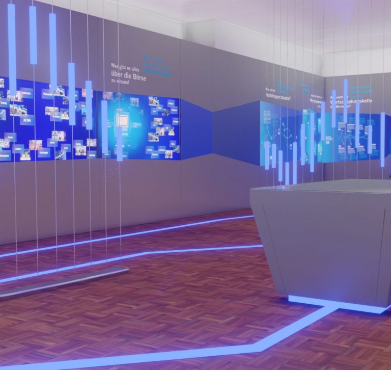 During my work at Cosalux I had the opportunity to work on a big project: the “Deutsche Börse Visitors Center” in the historical stock exchange building in downtown Frankfurt am Main/ Germany. The installation will provide visitors with extensive information about Deutsche Börse using newest technologies.