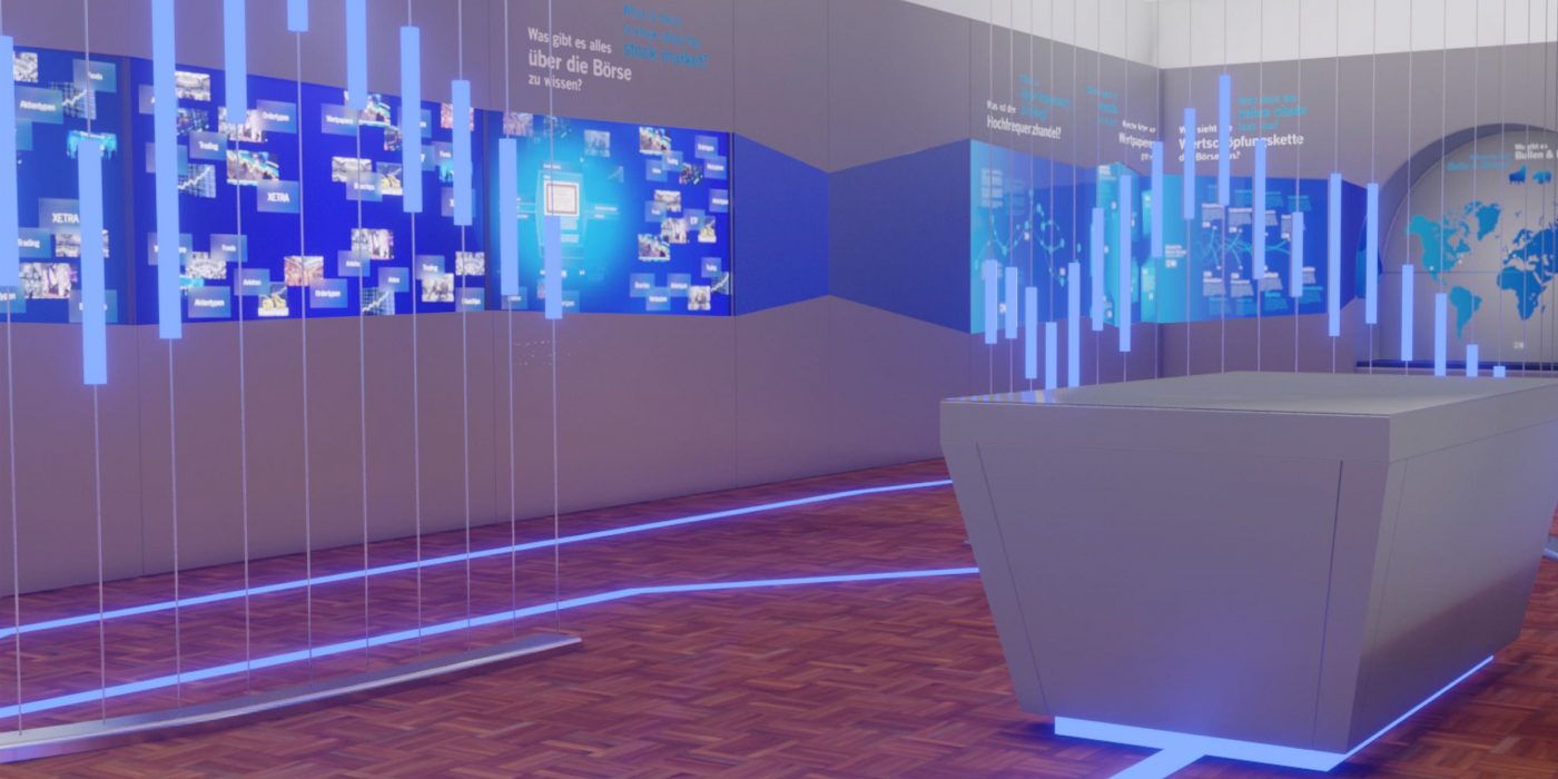 During my work at Cosalux I had the opportunity to work on a big project: the “Deutsche Börse Visitors Center” in the historical stock exchange building in downtown Frankfurt am Main/ Germany. The installation will provide visitors with extensive information about Deutsche Börse using newest technologies.